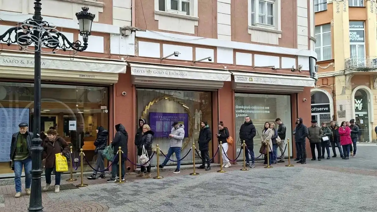 Опашката от чакащи пред чейндж бюрото на Тавекс в центъра на града остана голяма през целия ден.