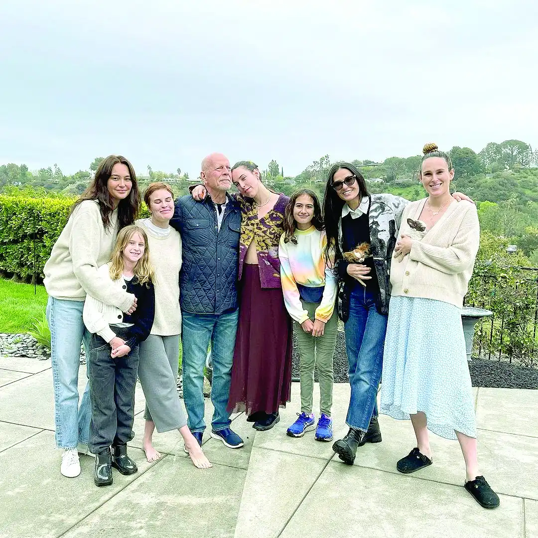В този труден и тъжен момент до него е цялото му голямо семейство – съпругата Ема Хеминг, с която са женени от 16 години, двете им дъщери Мейбъл, на 13 г., и Евелин, на 11, бившата му съпруга Деми Мур и трите им по-големи момичета Румър, Скаут и Талула, съответно на 37, 34 и 31 г. Макар да не ги разпознава, Брус Уилис усещал любовта им и се радвал на присъствието им, сподели една от дъщерите му. Бившата и настоящата съпруга на актьора са в добри отношения, поне засега.