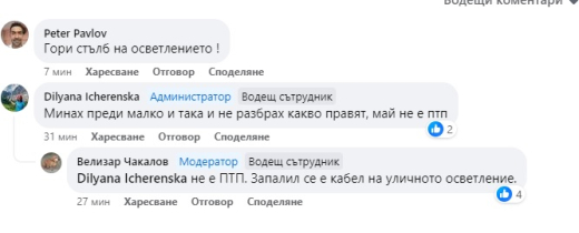 Впоследствие става ясно, че причината за затруднения трафик не е поредната катастрофа, а запалил се стълб на уличното осветление.