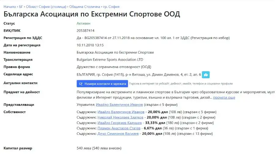 Според разпространените по-рано инициали, освен Иванов сред убитите са още Дечо В., на 45 години, и Пламен Ст., на 51 години. Ивайло Калушев не е сред жертвите, но именно той е обект на издирване. Данни от Търговския регистър показват, че Калушев, Иванов, Дечо Василев и Пламен Статев са съдружници в „Българска асоциация по екстремни спортове“ ООД, като най-голям дял притежава Калушев.