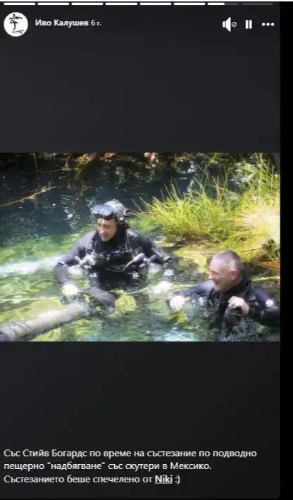 В социалните мрежи профил на Иво Калушев показва последна активност от 1 февруари, когато той е споделил стихотворението „Борба“ на Христо Ботев. Снимки разкриват, че преди години е участвал в състезание по подводно пещерно надбягване в Мексико.