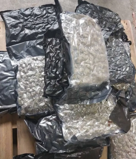 Митническият контрол установява, че пликовете съдържат зелена тревиста маса със специфичен мирис, която реагира положително на марихуана. Нетното тегло на тревистата маса е 356 кг.