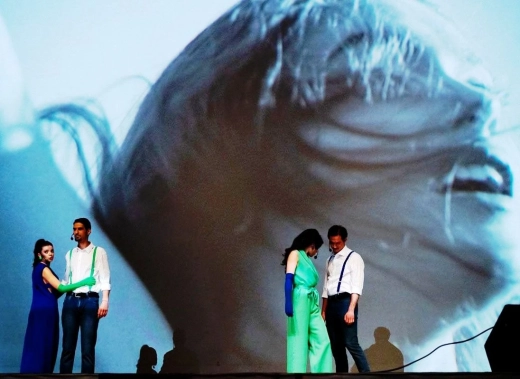 Момент от литературния пърформънс, с който в зала 1 на НДК беше открит Синелибри 2024