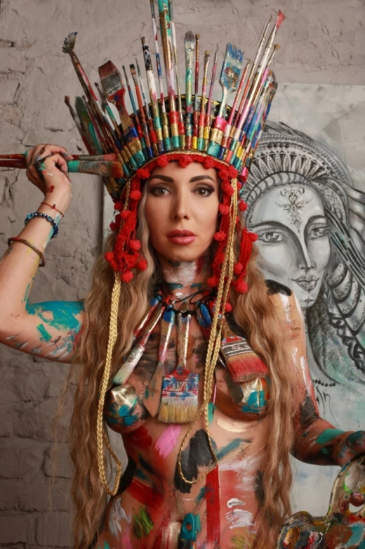 Непокорната модна дизайнерка е известна с провокативните си ревюта и перформанси, разкриващи чрез феноменален дизайн нашумели пиперливи теми на обществото ни. На последния си перформанс тя излезе носеща кръст на раменете си и бе разпната с розовите си одежди.