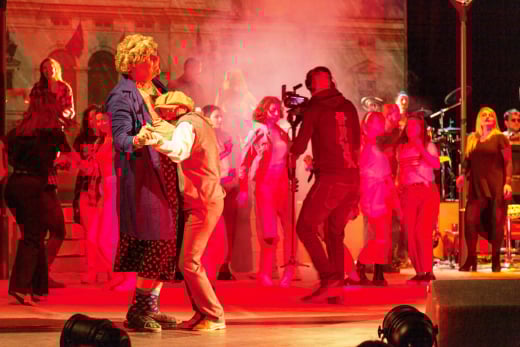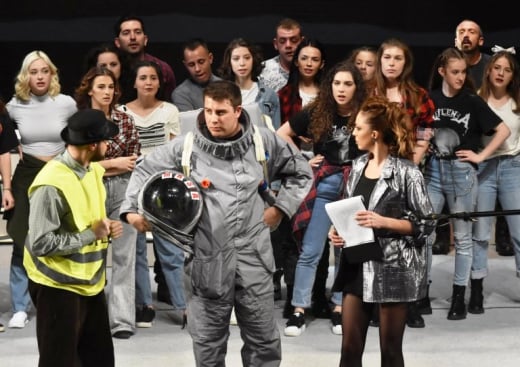 Споделяйки след спектакъла моите отлични впечатления от музикалните изпълнения с Константин Икономов, той шеговито сподели: „Само да не вземем от много музика да забравим да …играем на сцената.” За да бъде преживяването още по-пълно, а картината още по-пъстра, на сцената се вихреше с младежки жар и вдъхновение танцова група от студенти и студентки в НАТФИЗ, пригласяйки и на песните.