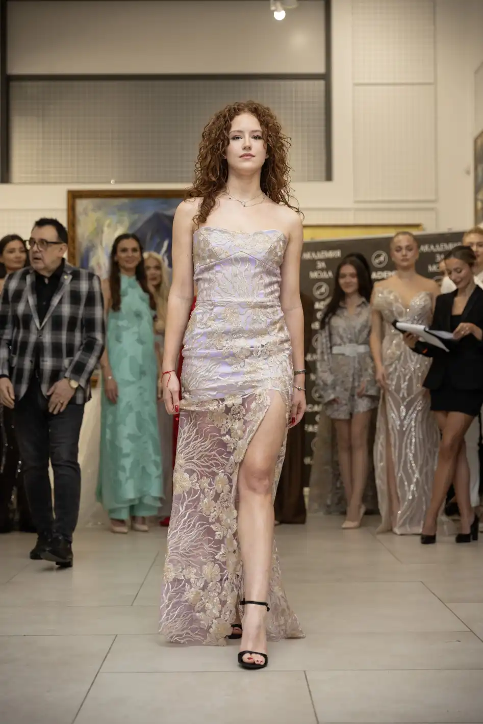 Най-младата участничка – 17-годишната Борислава Борисова, представи рокля от колекцията Luce Dorata („Златна светлина“), вдъхновена от контраста между ефирност и блясък.
