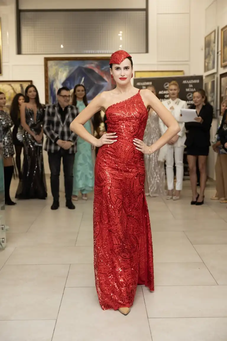 Поля Кинова – дизайнер на модна къща Paloma Fashion и двукратен носител на „Златна игла“, представи своята ода на елегантността – роклята Red Elegance. Аутфитът е вдъхновен от легендата – Джорджо Армани.