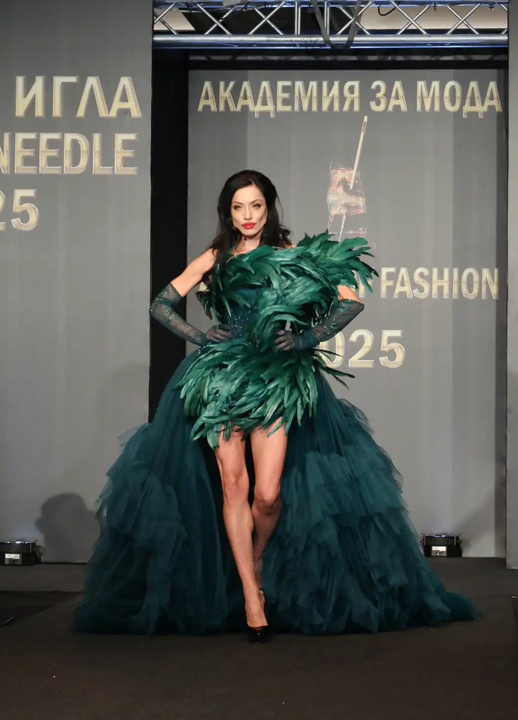 Есил Дюран – носител на „Златна игла 2025“ в новата категория „Визионерство в музиката и модата“ и дизайнер на Esil Duran Fashion Gallery, показа новата си колекция – дръзка, бляскава и неудържимо женствена. В предложенията преобладават пера, пайети, диаманти и кожа.