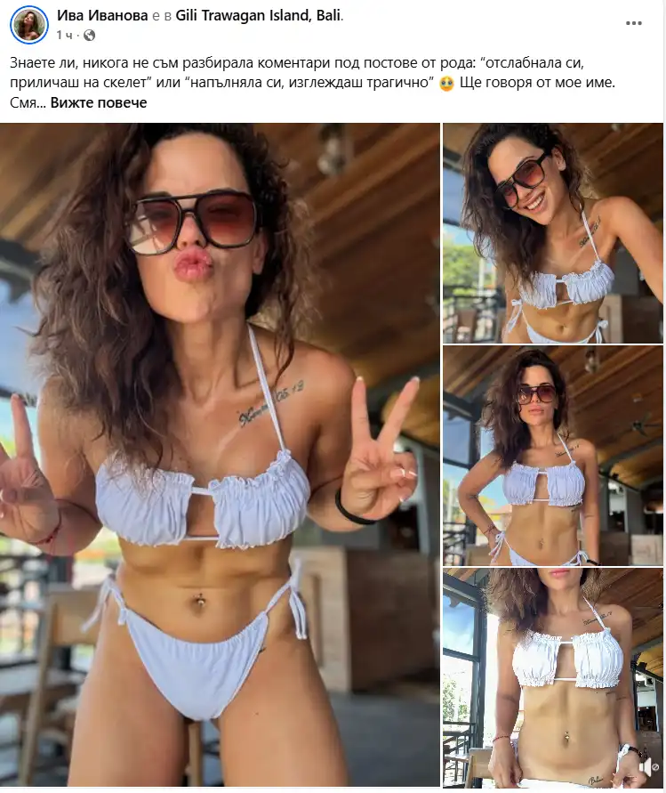 "Знаете ли, никога не съм разбирала коментари под постове от рода: “отслабнала си, приличаш на скелет” или “напълняла си, изглеждаш трагично” Ще говоря от мое име. Смятам, че всеки има моменти, в които не се чувства добре психически и това се проявява по различен начин.