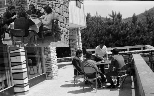 На снимките: Терасата на хижа „Бели брези“. Масата, на която са играли…