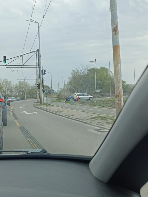 Жената е опитвала сама да избута возилото, което е непосилна задача за сам човек, още повече и жена. В този момент трима мъже се затичват да съдействат. Гледката не остава не забелязана.