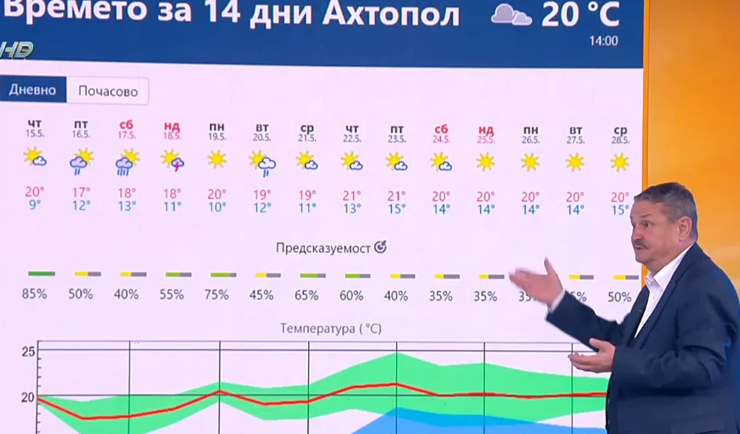 Рачев прогнозира, че ще бъде най-хладно в следващите дни, а после постепенно предстои затопляне. До този момент според него сме два градуса под новата най-топла норма за май.