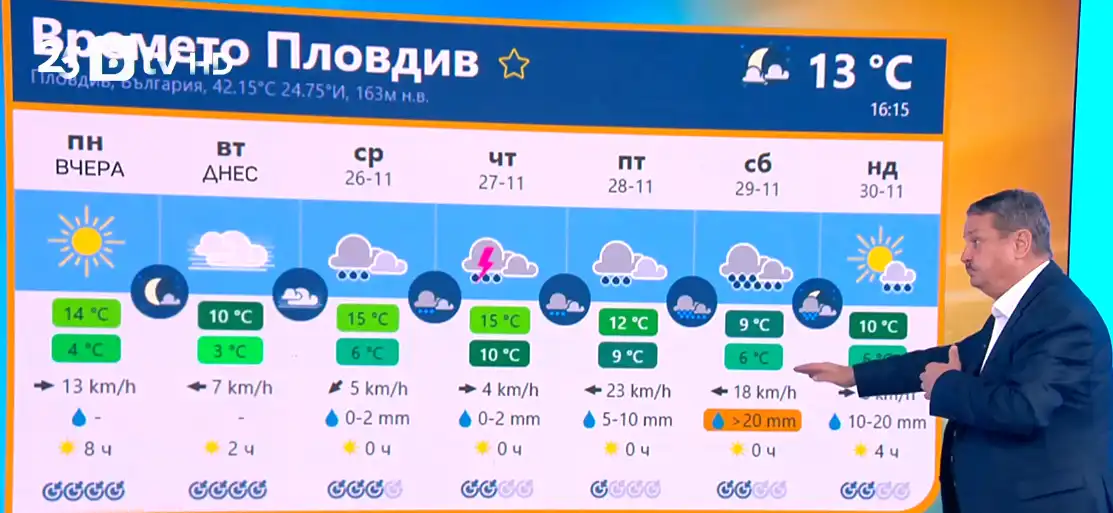 Месец до Коледа - изращаме много топъл ноември, но от утре ще извадя кожените якета, защото ще стане малко по-хладничко. Но без бели мечки. Така започна прогнозата си за времето проф. Георги Рачев пред bTV.