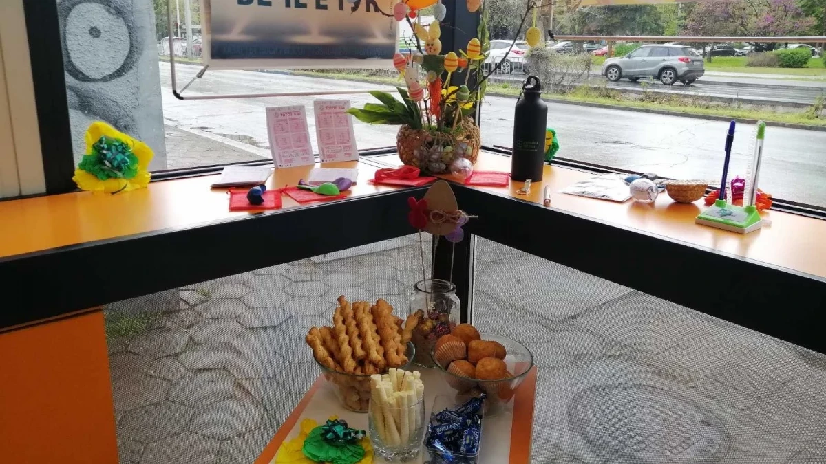 По случай Великден от Български спортен тотализатор изненадват клиентите си с дребни подаръчета, а в обособен кът гостоприемно са аранжирали малка масичка с мъфини, бонбони и солети.