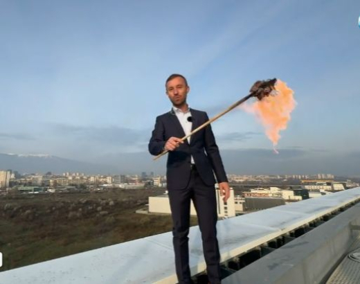 Той се включи на живо в ефир от покрива на сградата на телевизията, размахвайки запалена факла пред камерата. „Това, което виждате пред вашите екрани, е т.нар. уруглювица. Това е един обичай от Троянския край, от моя роден край, където тези неща се палят на Сирни Заговезни и се въртят с магическите думи: „У нас парите, у комшиите бълхите“, обясни ентусиазирано той.