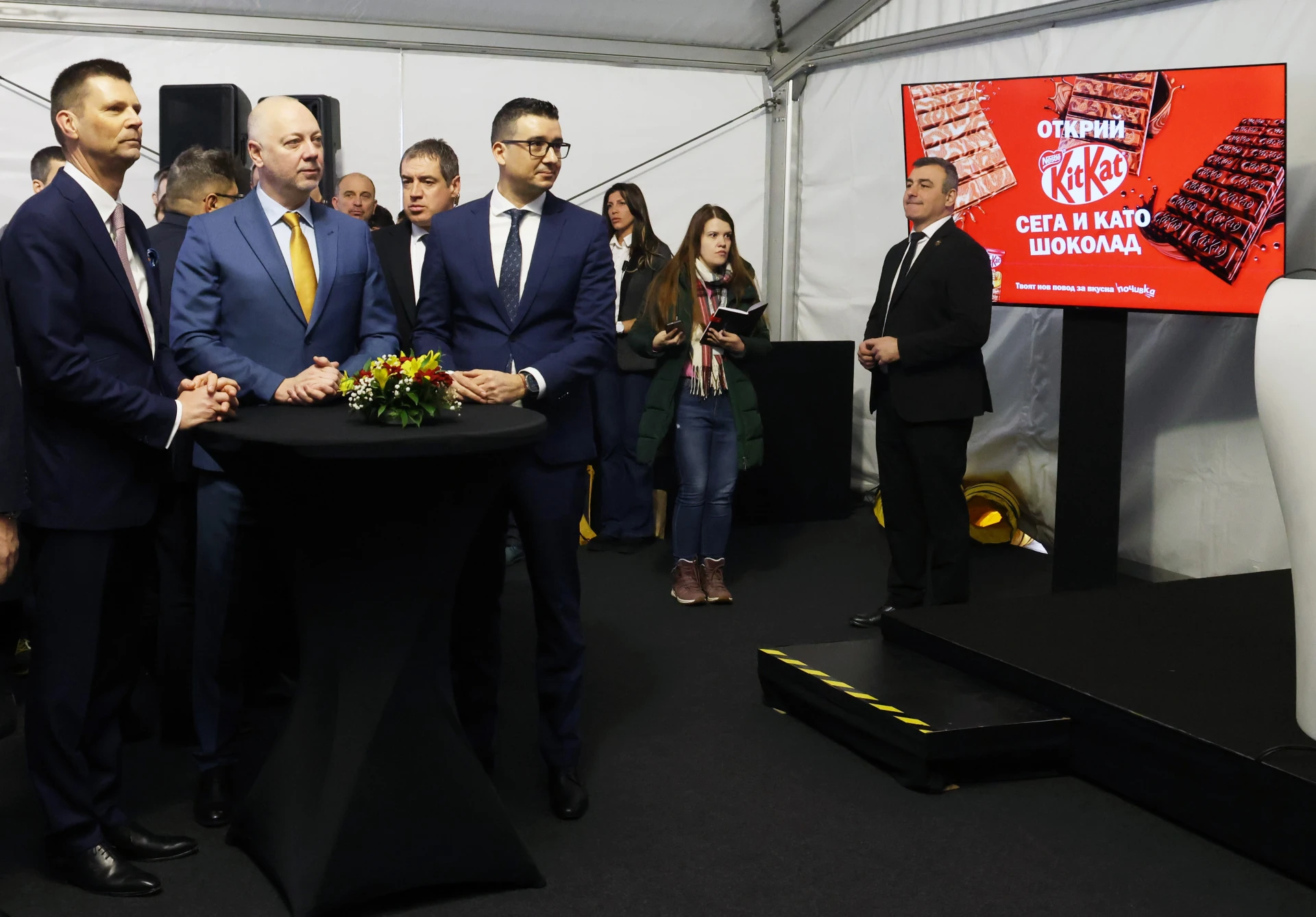 На официалната церемония по откриване на инвестицията участие взеха министър – председателят Росен Желязков, министърът на труда и социалната политика Борислав Гуцанов, г-н Гийом Льо Кунф - изпълнителен вицепрезидент на Нестле и главен изпълнителен директор на компанията за Зона Европа, Петър Стоилов Изпълнителен директор за България, представители на българо - швейцарската търговска камара и на деловите среди у нас.