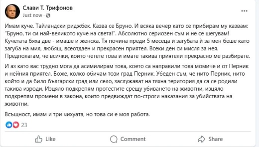 Ето какво написа Трифонов в личния си фейсбук профил:
