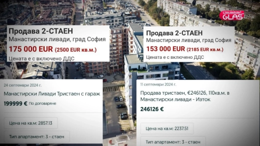 За сравнение във видеото ви показваме справка от сайтовете за продажба на имоти. Виждаме, че квадратният метър в квартала, в който се намират жилищата, върви над 2000 евро.