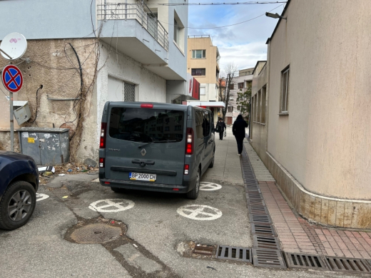 Той наскоро е закупил и регистрирал придобивката си и явно не е имал търпение да го покаже на хората, изтипосвайки го на място, което е обозначено с няколко знака, които забранят паркирането и престоя на автомобили, като предната част на автомобила е качена на пешеходната зона.