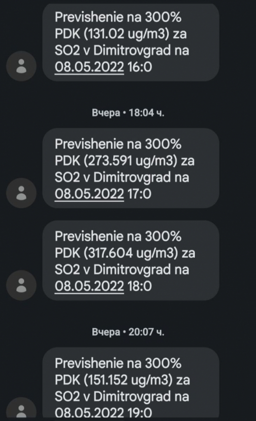 За 6-ти пореден ден в Димитровград са отчетени завишения на нормите на серен диоксид над разрешените стойности.