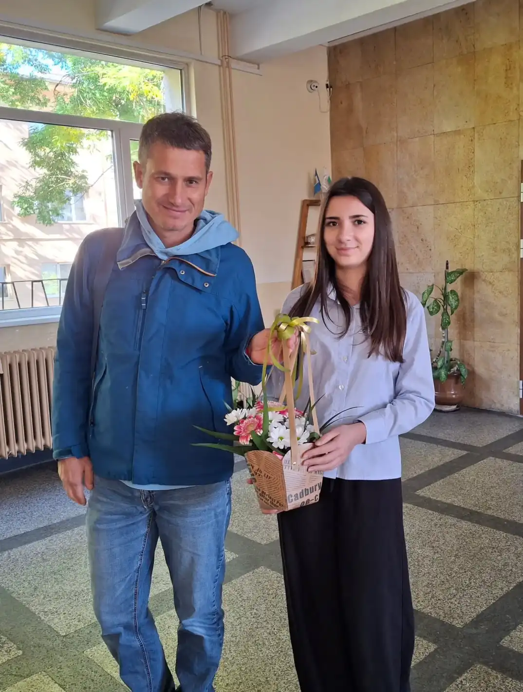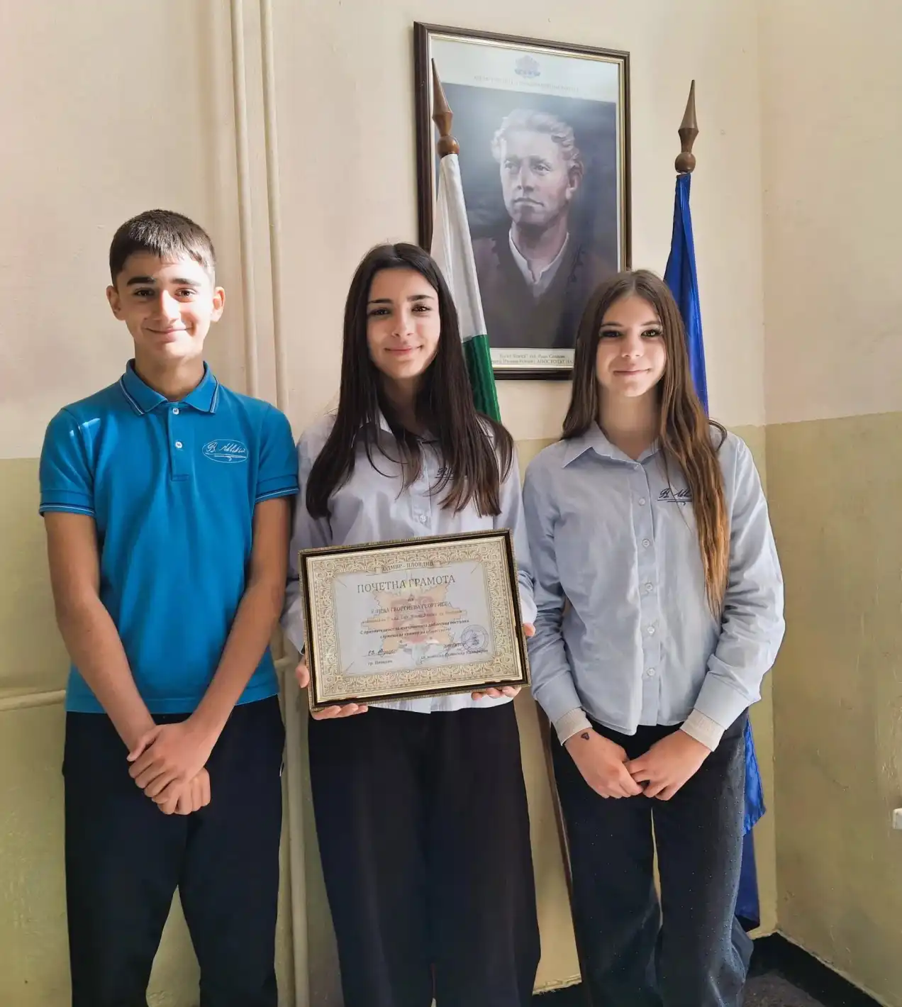 На кратката церемония присъстваха директорът на учебното заведение Гергана Петрова, класният ръководител Илияна Зъзрова, инспекторът от Детска педагогическа стая към Шесто РУ Трифон Найденов и двама от съучениците й - Павел Божидаров и Моника Богданова, с които са били заедно на въпросната дата.
