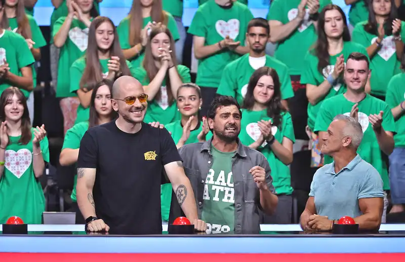 Комикът, който в момента обикаля България с турнето си "Пълно безобразие", трябваше да обясни на съотборниците за него, без да използва няколко забранени думи, според регламента на играта със скрития предмет в кутиите.