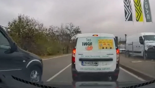 Кадри от станалото са споделени в социалните мрежи. На записа се вижда как машината преминава през насрещното, като засича и се вмъква пред лекия автомобил. След това от пасажерския прозорец на полита опаковка, а после водачът поема по пътя си.