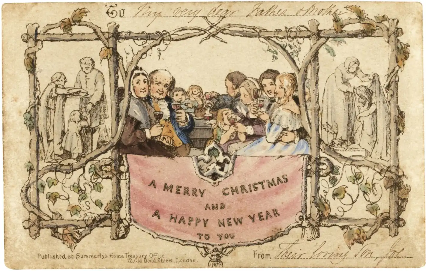 Било изписано още: „Желая ти весела Коледа и щастлива Нова година!”. Кол много харесал изработката и поръчал да му отпечатат 1000 картички, като заплатил за всяка по 1 шилинг, колкото била седмичната работническа надница.