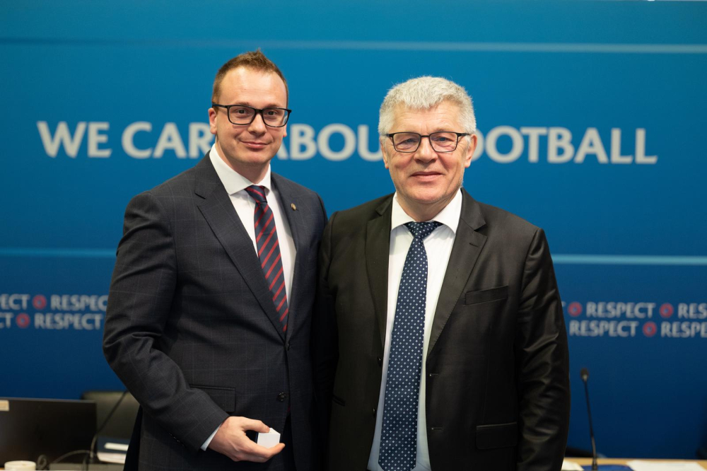 В централата на УЕФА в Нион се проведе първото заседание на Комисията по статута на играчите, трансферите и регулирането на отношенията с футболните агенти. Българският футболен съюз бе представен от заместник-изпълнителния директор Добрин Гьонов, който получи почетна значка лично от председателя на комисията Кристиян Андерсен в знак на признание за активната му работа и принос към развитието на футболната регулация.