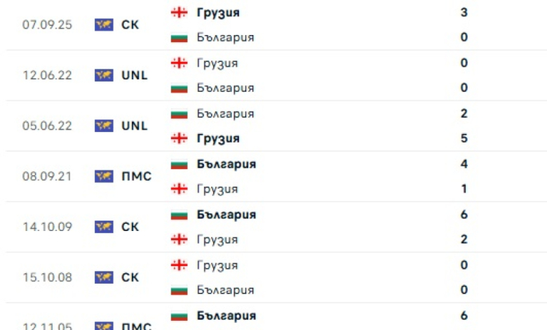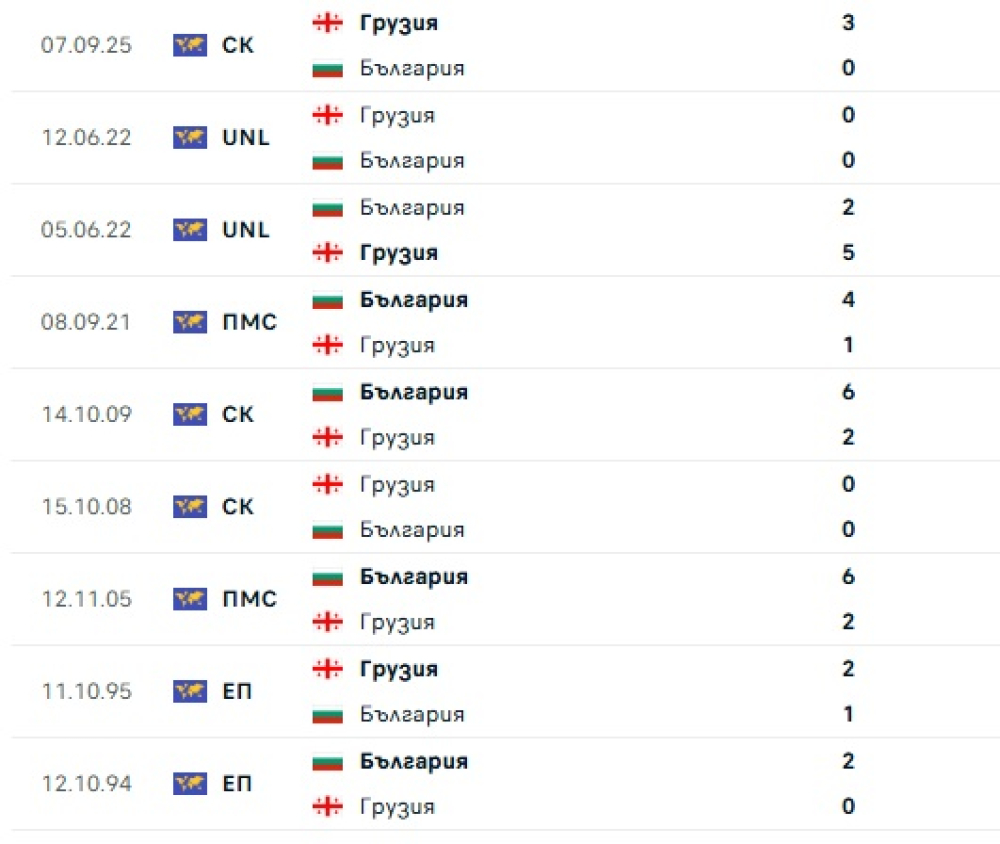 Баланс: 9 мача, 4 победи за България, 3 победи за Грузия, 2 равенства, г.р. 21:15 за България
