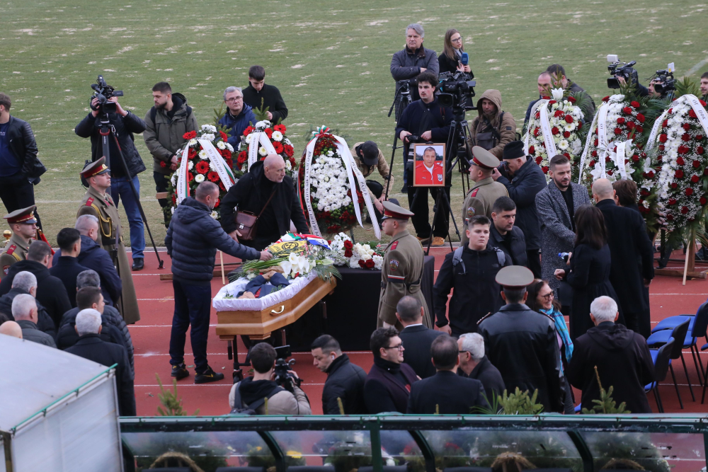 Не десетки, а стотици венци бяха поднесени на поклонението пред тленните останки на Димитър Пенев. Сред тях имаше и един, на който пишеше: „Почивай в мир, Старши. Футболен отбор ЦСКА 1985 – 1990“.