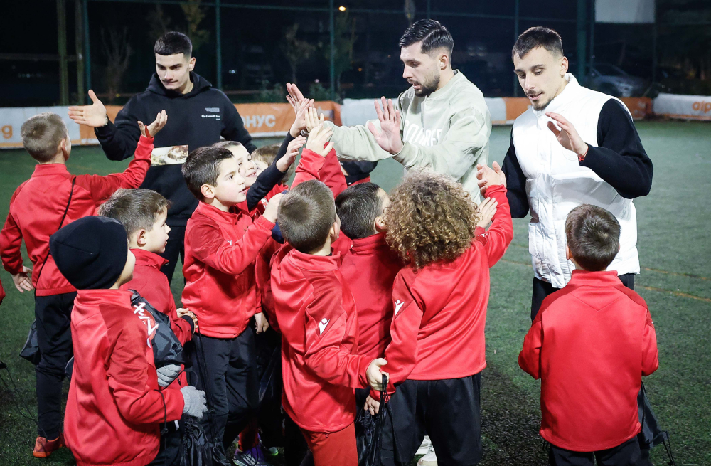 Посещението на играчите от първия отбор донесе незабравими емоции на децата и създаде истински празник на тренировъчното игрище.
