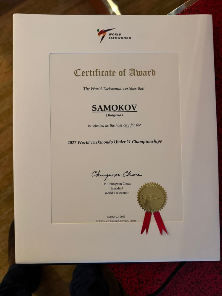 Само ден преди началото на Световното първенство по таекуондо за мъже и жени в Уси, Китай, България записа първи успех. След доста сериозна битка с изключително силни финансово държави, страната ни спечели домакинството на Световното за младежи до 21 г. през 2027г. Това бе обявено на заседанието на Световната федерация на заседание в Китай.