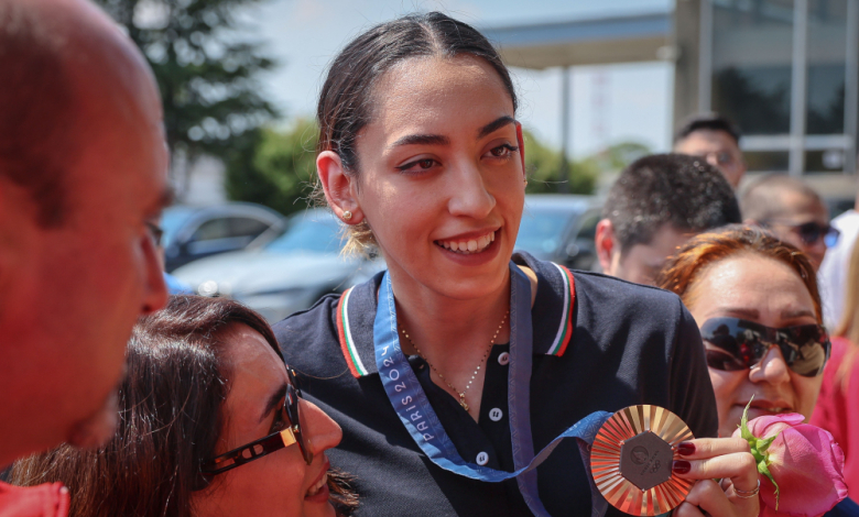 Бронзовата медалистка от Игрите в Париж в таекуондото Кимиа Ализаде се завърна в България. Тя беше посрещната от президента на федерацията Слави Бинев и десетки деца от националния отбор, както и от група фенове.