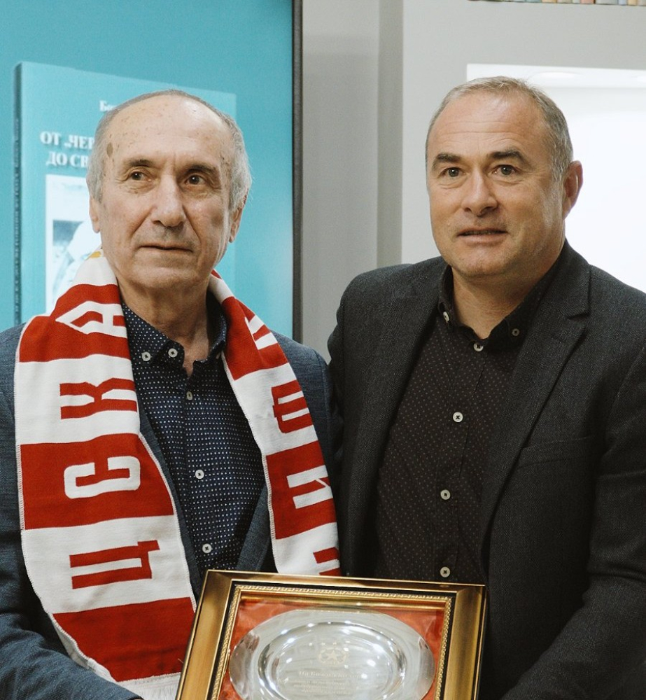От името на клуба Величков връчи на Божил Колев специален плакет в знак на уважение към огромния му принос за големия „армейски“ отбор от 70-те години.