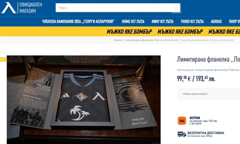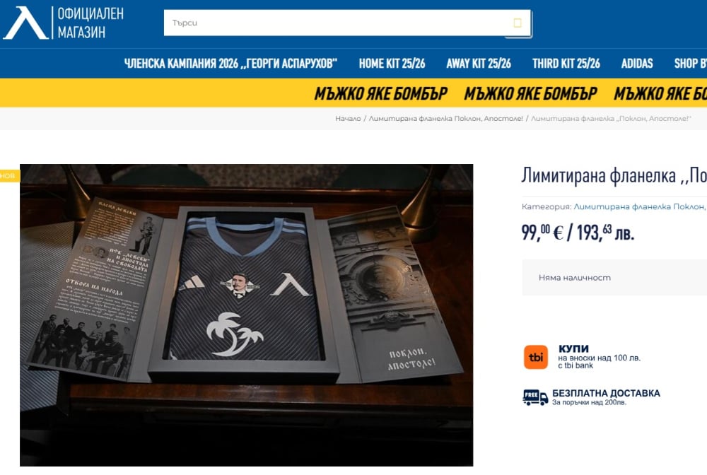 Посветената на клубния патрон Васил Левски фланелка струваше 99 евро, а за поставяне на име и номер се доплащаха допълнителни 10 евро. При отваряне на артикула в онлайн магазина на „сините“ стои надпис – няма наличност.