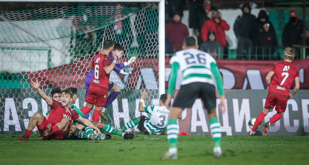 В 28-ата минута Живко Атанасов се оказа сам на далечната греда след изпълнение на корнер и опита с акробатичен удар да засече топката, но неуспешно.