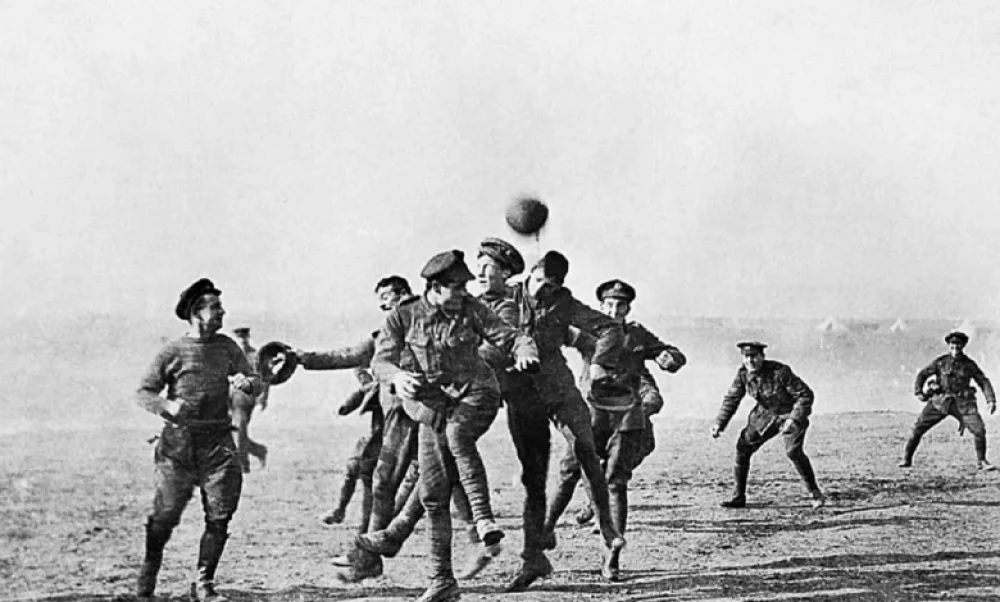 На едно от всичките места на Коледно примирие един срещу друг са Бекширският полк на британската армия и 133-и саксонски полк на германската войска. Те дори изиграват футболен двубой. Трудно е да се нарече истински мач. Теренът е замръзнал и неравен, осеян с ями от артилерийски снаряди. Навсякъде има огради с бодлива тел. Още по-зловещи са останките от човешки тела. Двата отбора са съставени от по 50 човека. Всеки, който е поискал да участва във футболния двубой е можел да го стори. В края немците печелят с 3:2. Резултатът и провеждането на мача са отразени от в. “Таймс”, който публикува писмото на майор от английския медицински корпус.