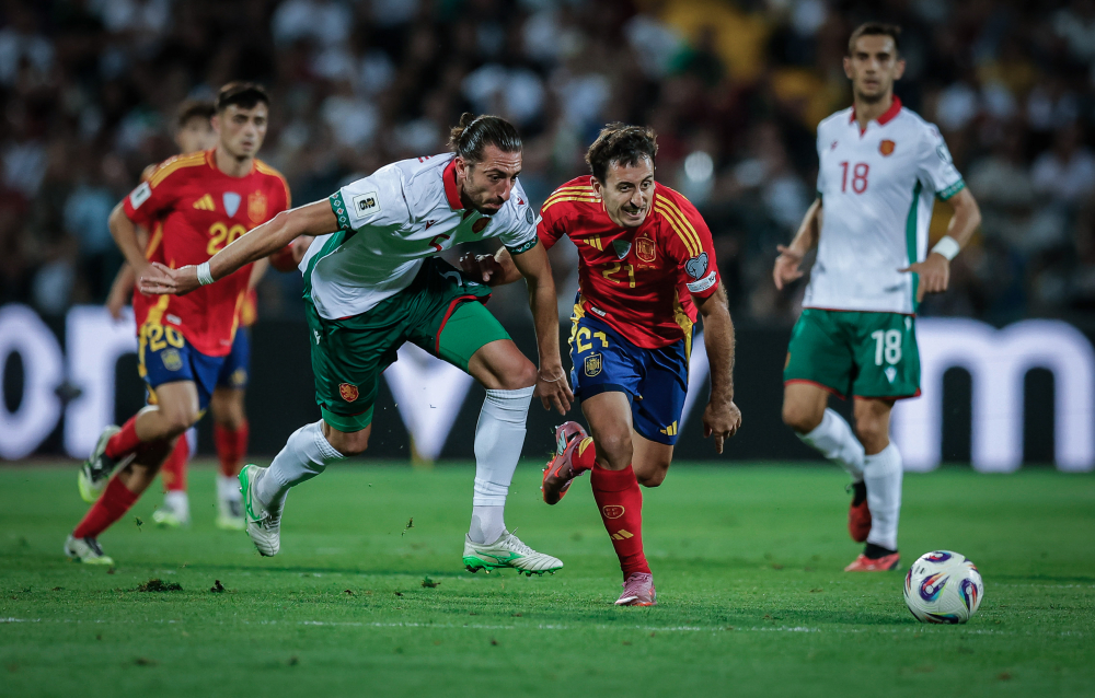 Нов изключително тежък мач очаква футболните ни национали. От 21:45 часа България гостува на европейския шампион Испания в среща от квалификациите за световното първенство през 2026 година в САЩ, Мексико и Канада.
