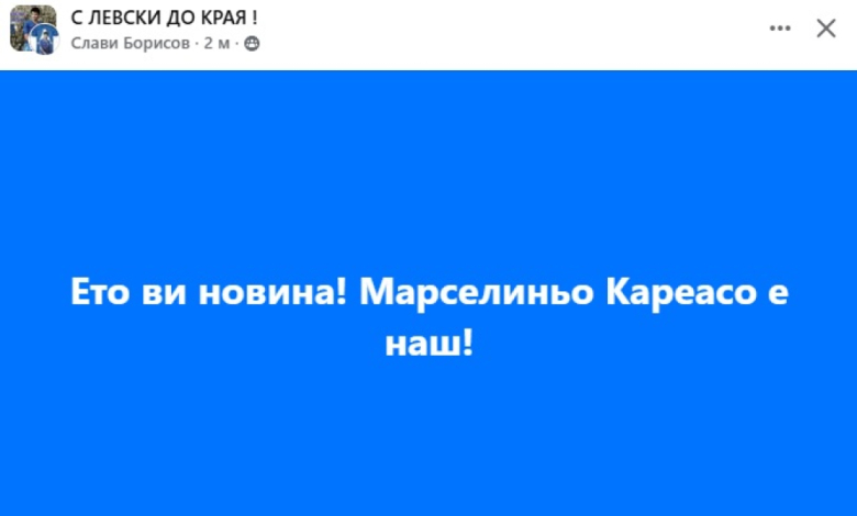 Бившият футболист на ЦСКА Марселино Кареасо се е разбрал с ръководството на Левски и ще заиграе на "Герена". Изключително информираният за случващото се при "сините" Слави Борисов съобщи новината, на която БЛИЦ получи потвърждение.