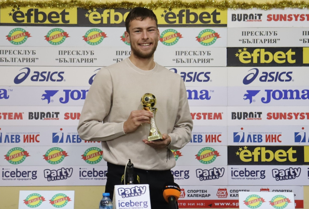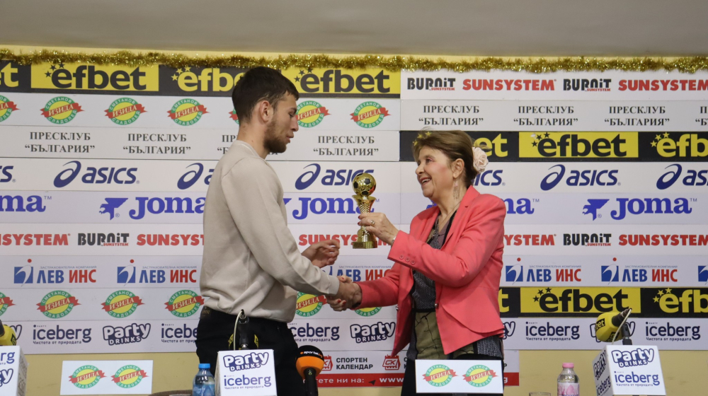 Мартин Георгиев получи стилна статуетка за №1 и благодари за наградата. Той обясни и на какво се дължи големия скок на Славия с треньора Ратко Достанич - от предпоследното място до седмата позиция. „С много дисциплина и екипна работа направихме финален спринт. Всеки път се борим. Добре комбинираме защита и атака, без добра отбрана няма победа. Много сме ефективни“, каза в Пресклуб "България" усмихнатият възпитаник на школата на Славия.