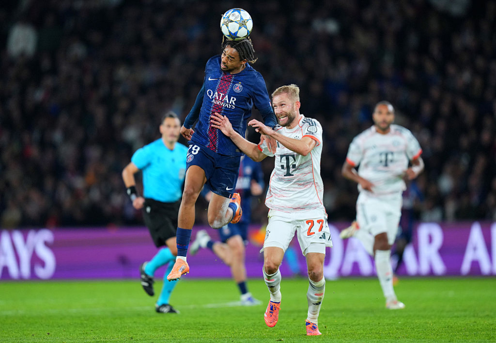 В края на първата част Диас си изкара директен червен картон за груб фаул срещу Ашраф Хакими, с което остави Байерн с човек по-малко.