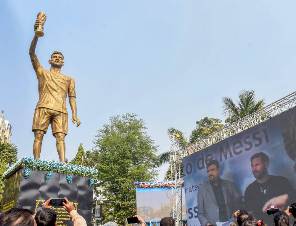 Меси пристигна в Индия на 12 декември заради церемонията по откриването статуята. Събитието се проведе на стадион „Солт Лейк“. Футболната суперзвезда наблюдава откриването чрез видеовръзка. След това, придружен от охрана и полиция, той се разходи по терена на стадиона, махайки на трибуните, и си тръгна 20 минути по-късно. Недоволните фенове предизвикаха безредици на стадиона.