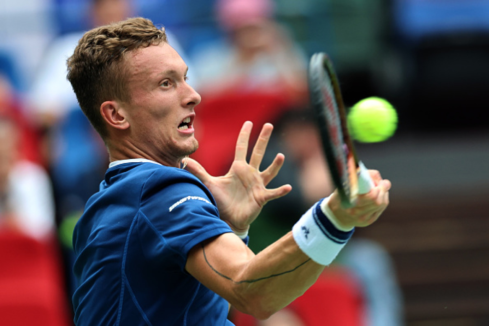 Лехечка победи французина Джовани Мпечи-Перикар след два тайбрек - 7:6 (3), 7:6 (7) в първия полуфинал за дена. В мача нямаше нито един пробив между двамата състезатели, които изпълняват отлично сервис и всичко се реши от по-здравите нерви на чеха в двата тайбрека. Мпечи-Перикар записа 19 аса от сервис срещу 11 за Лехечка, но французинът направи три пъти повече непредизвикани грешки - 12 срещу 4.