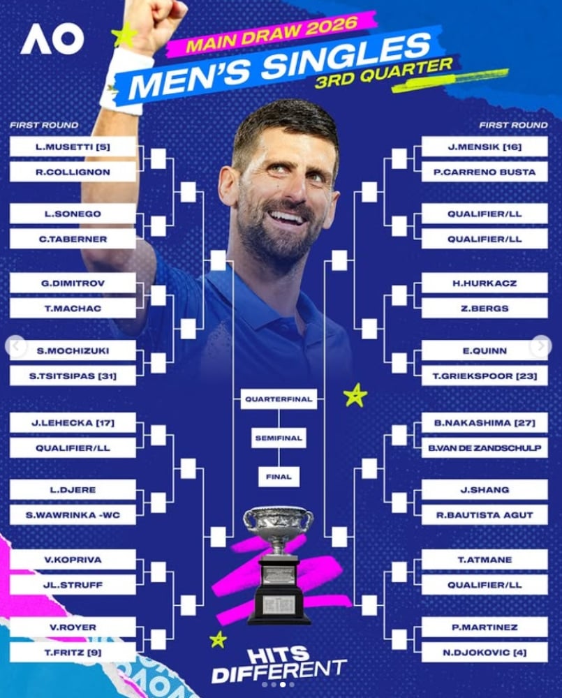 Четвъртият в схемата Новак Джокович, който е в половината на Григор Димитров, започва с мач срещу Педро Мартинес. При победа сърбинът ще играе срещу Теренс Атман или квалификант.