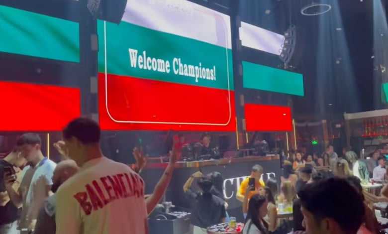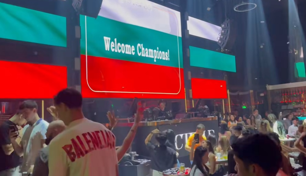 Дискотеката беше брандирана с българския трибагреник, а на видео стената бяха показвани паметните моменти от Мондиала във Филипините.