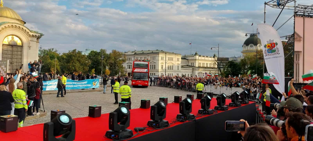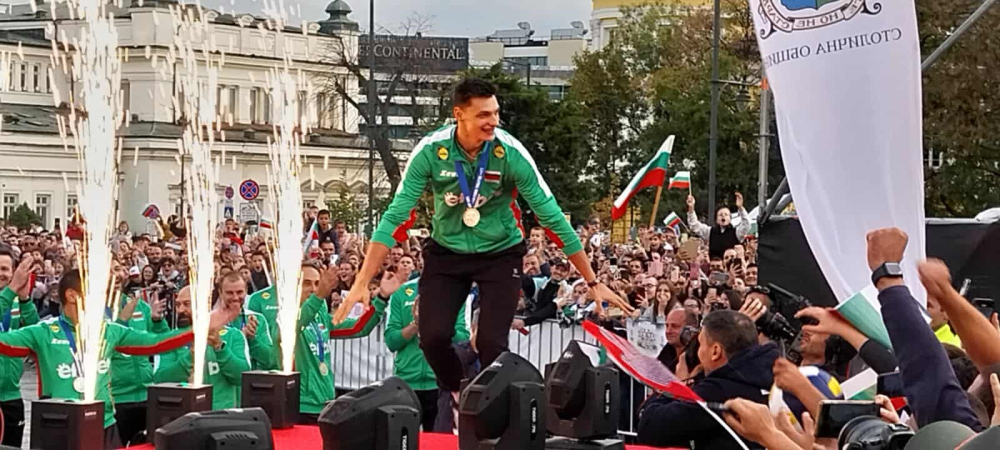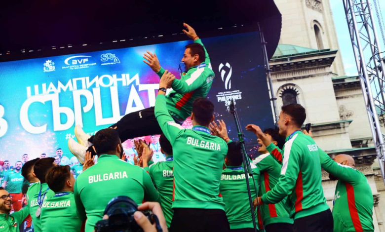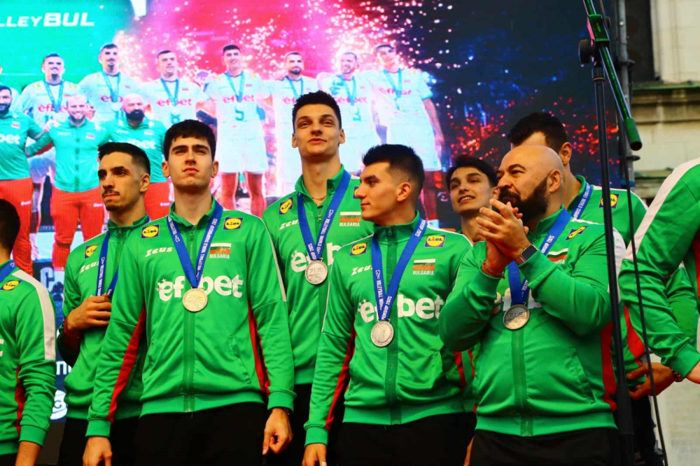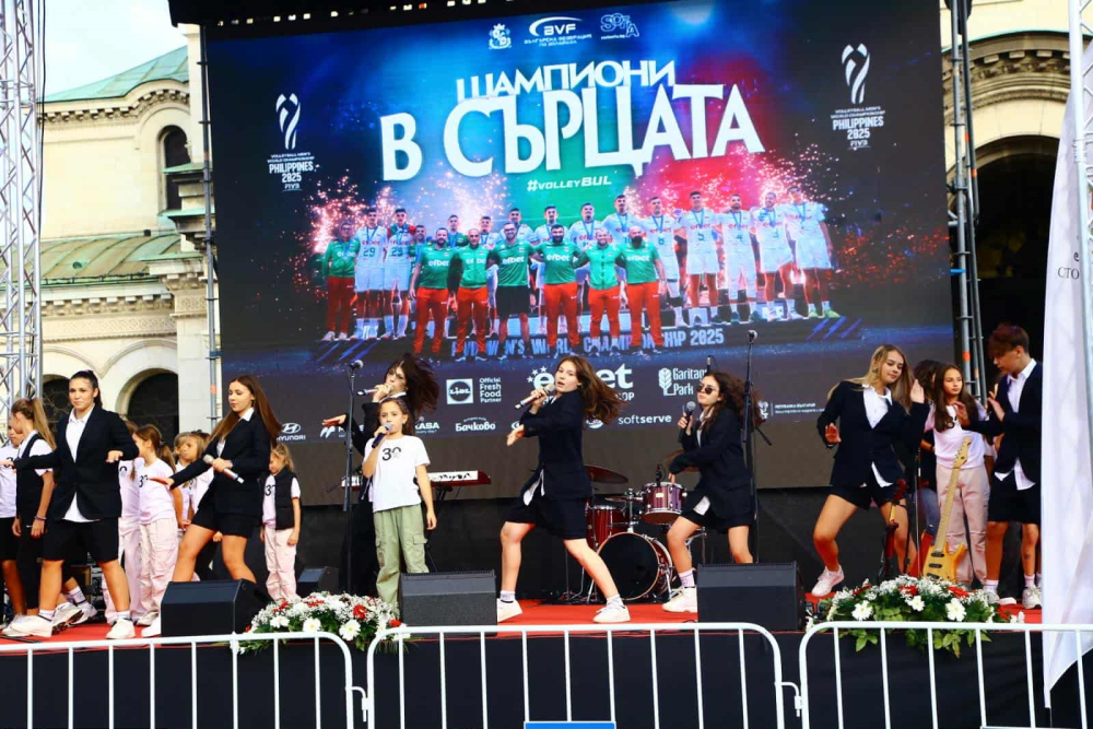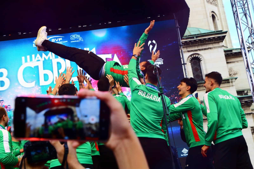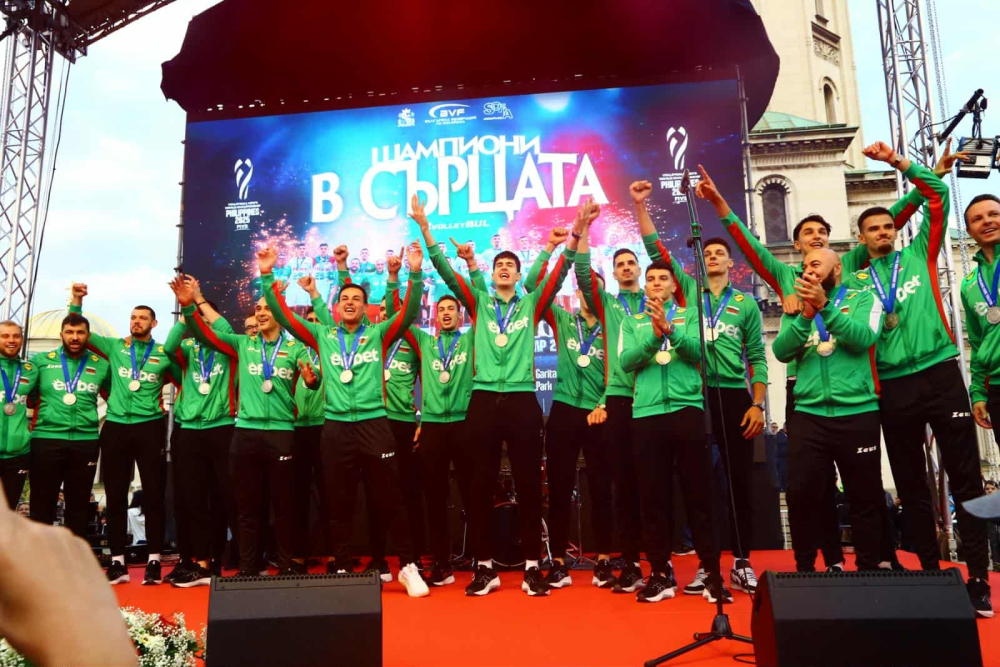 Хиляди хора посрещнаха из улиците на София волейболните герои, станали втори на световните финали във Филипините. Тържеството стартира пред храм-паметника "Александър Невски", след което младите "лъвчета", качени на открит двуетажен автобус с надпис "Шампиони в сърцата", започнаха обиколка из центъра на столицата. Трийсетина минути волейболистите бяха върнати на площада пред "Невски", където тържествата продължиха.