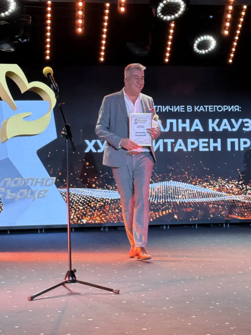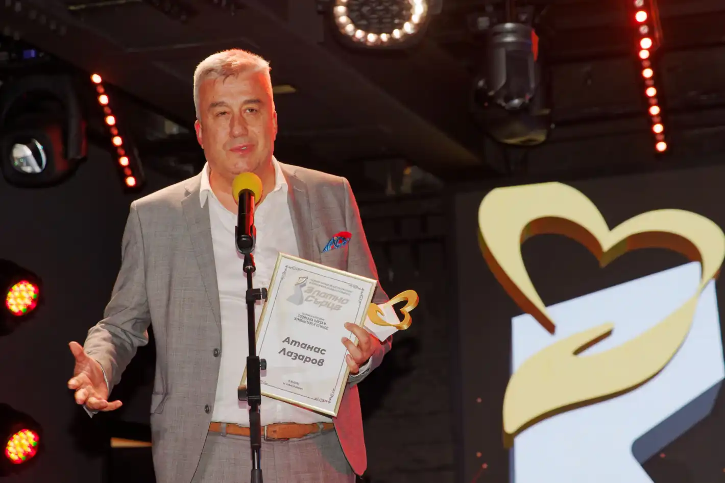 Сред големите отличени тази година бе неуморният ПР експерт и продуцент Атанас Лазаров, получил престижната статуетка "Златно сърце" за проекта "Концерти с кауза", реализиран съвместно със Сдружението на независимите автори, музиканти и продуценти (СНАМП).