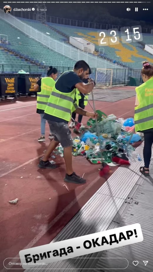 "Време е да ви кажа какво ще се случва днес и какво ще правим. Днес е големият концерт на Ед Шийрън на "Васил Левски" и за почистването на и около стадиона, отговаряме персонално двамата с брат ми - Георги.