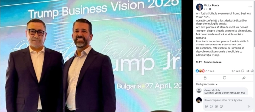 Присъства и Виктор Понта, независим кандидат за президент и бивш министър-председател на Румъния, който позира с най-големия син на президента на Съединените щати Доналд Тръмп-младши, съобщава румънският вестник "Адевърул".
